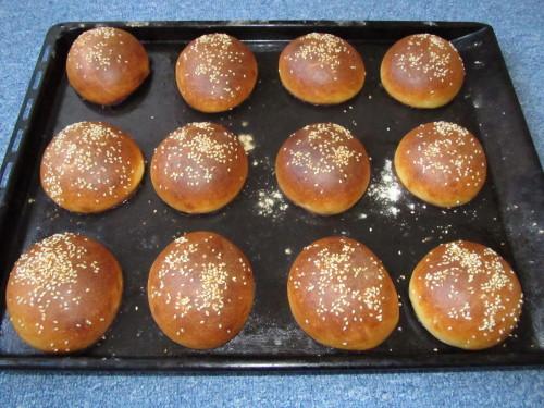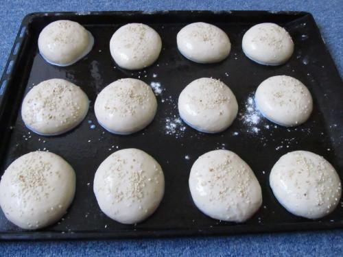 Receptů na zaručeně jediné pravé hamburgerové housky jsem našla několik. Mírně se od sebe lišily. Inspirovala jsem se jimi a vytvořila variantu vlastní, ve které jsem ke kynutí použila pšeničný kvásek.