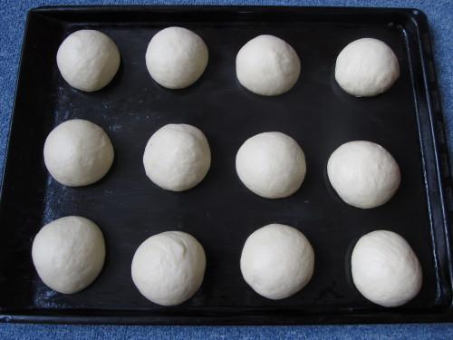 ...jsem z těsta vytvarovala bochánky, které jsem nechala ještě asi dvě hodiny dokynout na plechu.