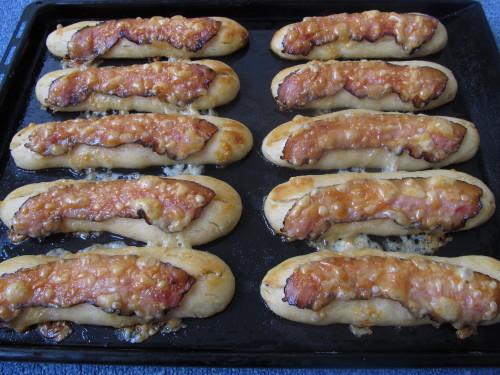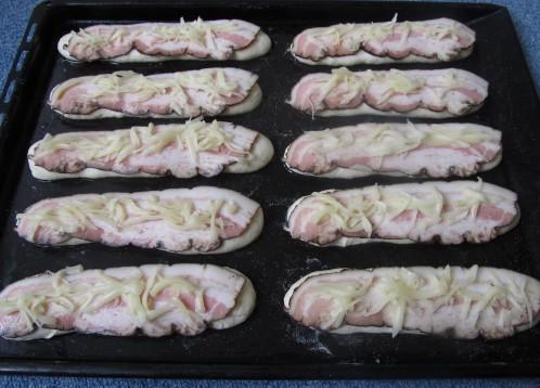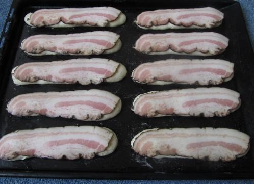 Před pečením jsem na každý rohlík položila plátek slaniny...