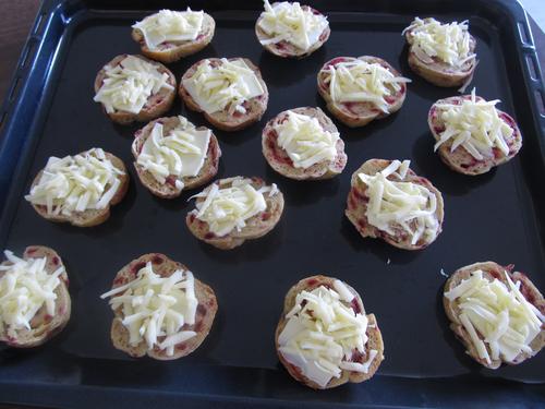 Další den jsem tak byla nucena uskučnit pokus číslo tři. Tentokrát jsem použila zamotané housky s červenou řepou a sezamem. Housky jsem rozkrojila napůl, mírně potřela máslem, posypala strouhaným sýrem...