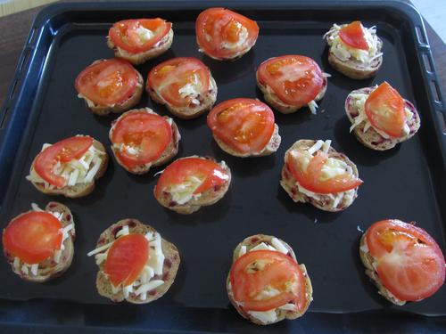 ...a pokladla plátky rajčat. Takto připravené housky jsem nechala deset minut rozpéct v troubě. Výsledek mě celkem překvapil. Housky byly tak akorát křupavoučké a opět zmizely dřív, než jsem se stihla otočit.