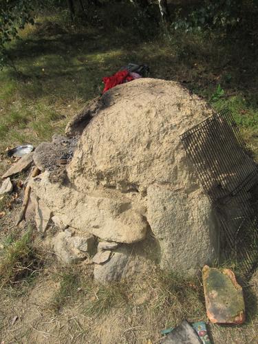 Mnohem více přemýšlení mi zabraly úvahy o tom, jestli ještě stojí pec Berta. Jak moc jí uškodila letošní zima? Nebo ji postihla nějaká katastrofa v podobě kolemjdoucích zvědavých turistů? Tyto obavy bohužel nebyly zbytečné. V okolí vchodu do pece se zabydlela ještěrka, čímž se značná část pece vydrolila. Před prvním pečením jsme tak museli provést renovaci - zabudovat zpátky jeden kámen u vstupu, který ještěrčinou činností vypadl před pec. A najít větší zavírací kámen, který pak bylo nutné dávat nahřívat do pece. Po této malé renovaci Berta fungovala celý týden. Nicméně příští rok by si jistě zasloužila renovaci větší.