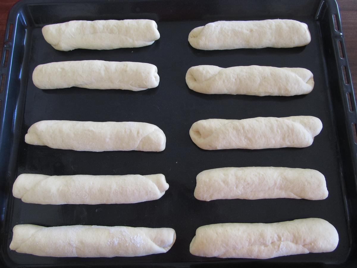 Vytvarované bagety kynuly na plechu ještě asi dvě hodiny...