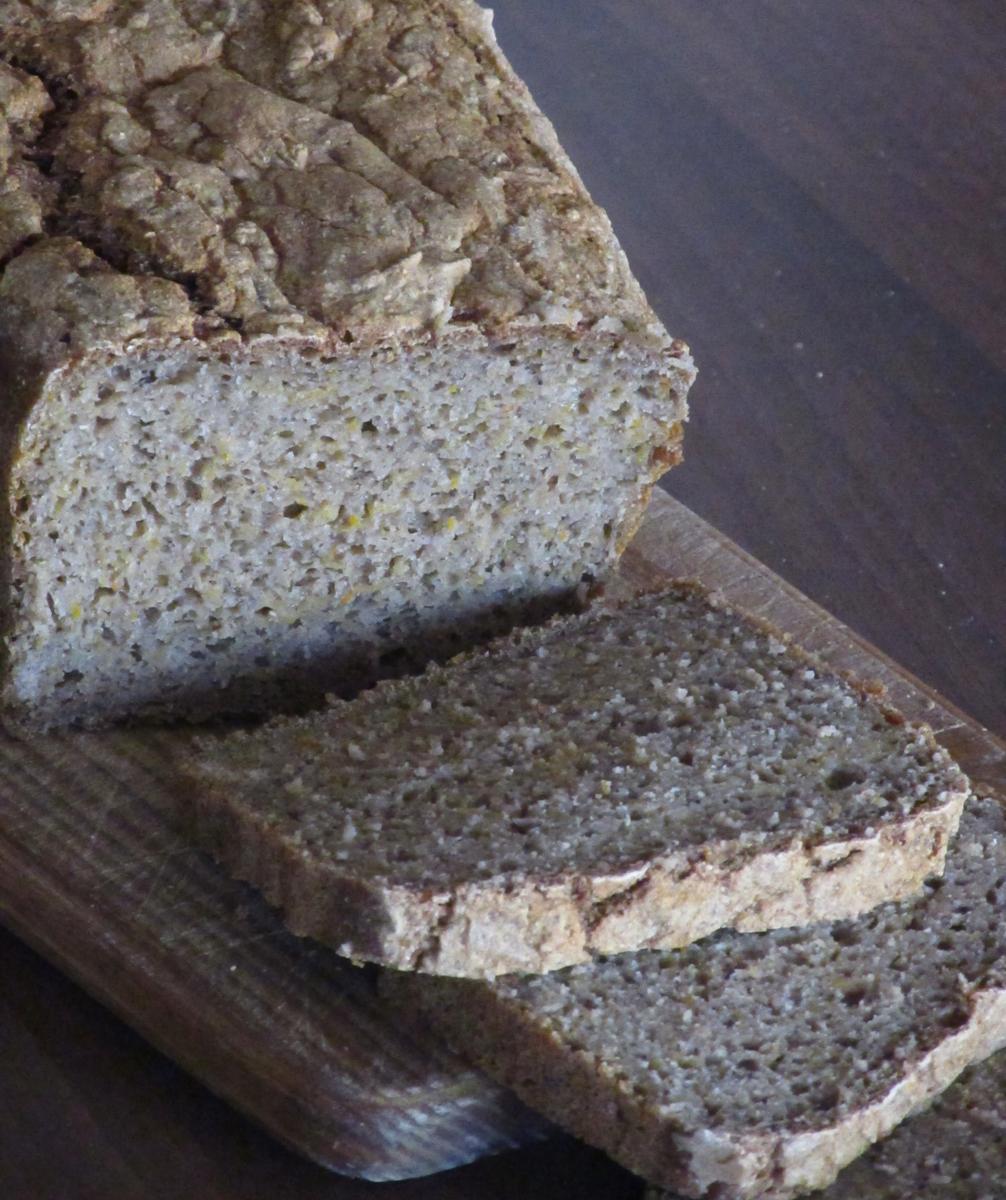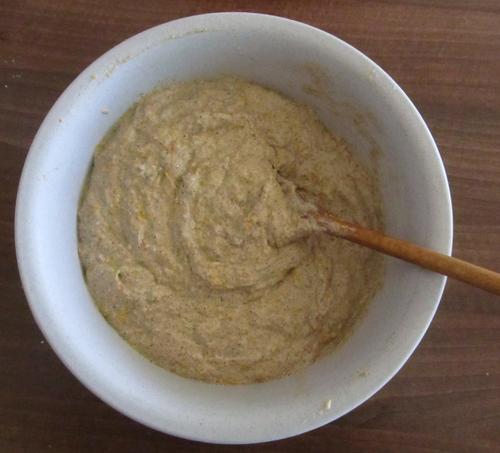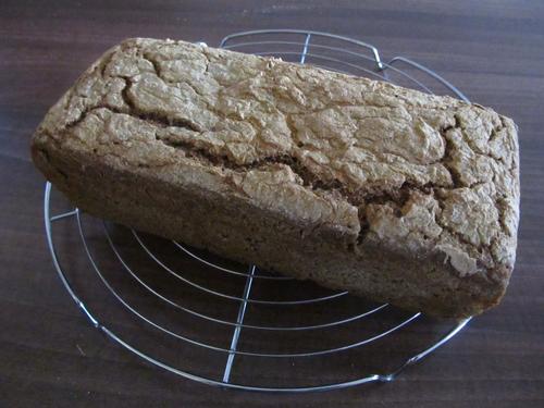 Do těsta na tento chléb dávám k žitné a pohankové mouce dost vody, takže výsledná konzistence těsta je řídká, jakoby kašovitá.