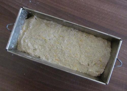 Takto umíchané těsto přeliju do máslem vymazané formy. Je potřeba vymazávat máslem nebo jiným "tuhým" tukem. Olej během několika hodinového kynutí stéká dolů a chleba se pak u horních okrajů formy přichytí.