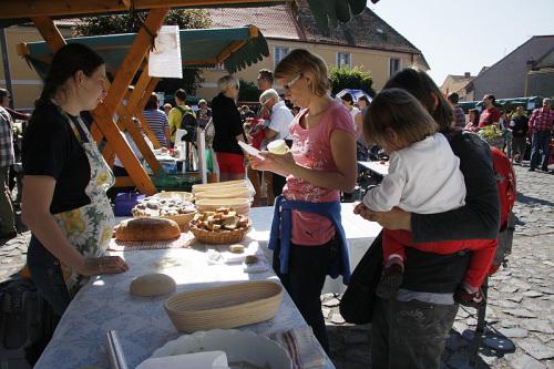 V Roudnici na náměstí jsem už měla vše nachystané, přesně podle předchozí domluvy a ještě předtím, než jsem stihla dokrájet chleba na ochutnávku, nakukovali do mého stánku první zvědavci.